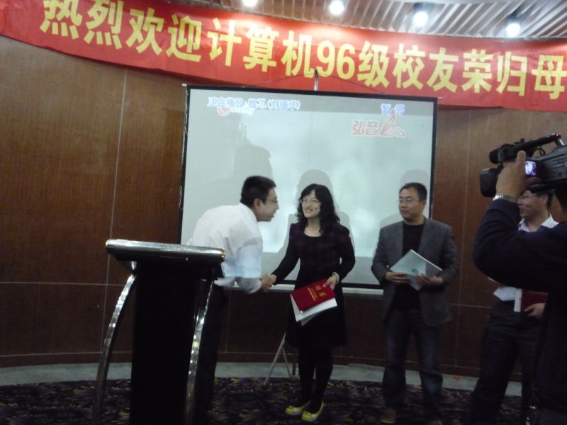 10月5日,计算机系96级校友毕业十周年聚会在天丽贵宾楼举行,学院主要领导、96级部分任课老师应邀参加宴会。会上,后备军官学院院长杨同伟、我院党委副书记苏兴、计算机96级辅导员张帆老师分别致辞。为表达对母校和老师的感激之情,计算机96级全体校友向学院捐赠了8000元作为“计通学院校友奖学金基金”,副书记苏兴代表学院接受捐赠,并向三名校友颁发“石油大学就业信息员”聘书。