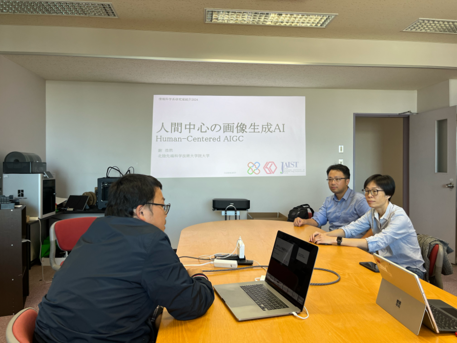 学院代表团在北陆先端科学技术大学院大学拜访了学校副校长饭田弘之教授、计算机科学系主任田中清史教授、前园凉教授和谢浩然副教授及在读博士留学生。双方就中国石油大学(华东)-北陆先端科学技术大学院大学间协议续签达成了良好的意愿,与计算机科学系教授们进行了学术交流并达成了学院间学术交流和合作的意愿,并向正在攻读博士学位的留学生同学们进行了人才引进政策宣讲。之后,代表团参观了超算中心。
