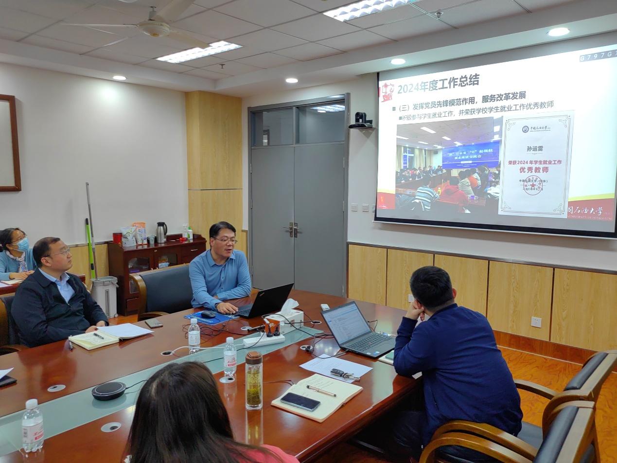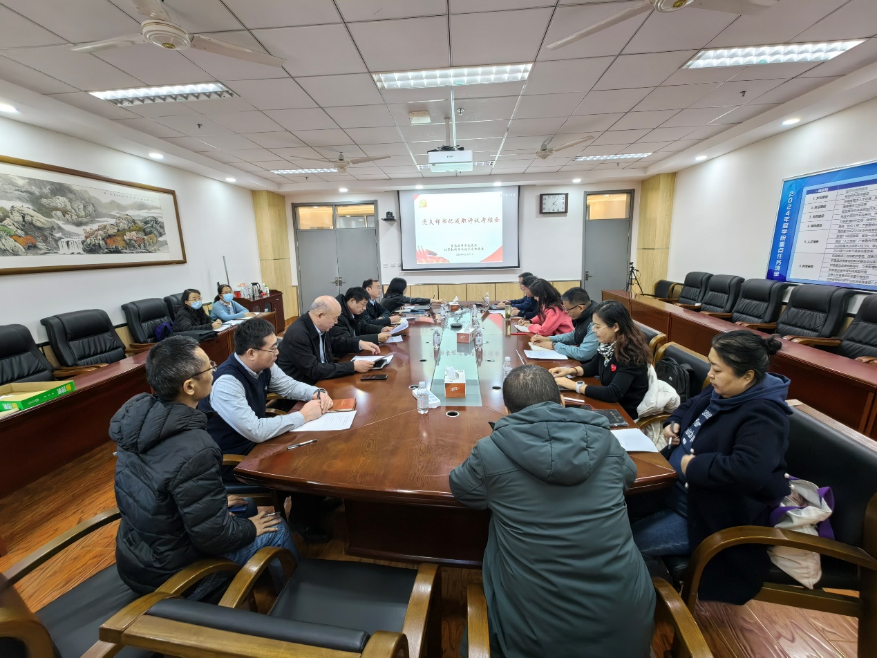 根据学校党委《2024年度院级党组织书记抓基层党建工作述职评议考核实施方案》和《2024年度院级党组织书记履行全面从严治党责任述职评议工作实施方案》的通知精神,学院于2024年12月31日进行了教工党支部书记述职评议考核工作。学院党委委员、教工党支部书记和支部委员参加考核会,专职组织员王阜东主持会议。