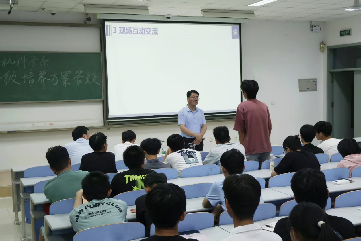 在“现场互动交流”环节,学生踊跃提问,问题涉及学分绩、小学期、竞赛、科研项目、实习等方面,孙运雷一一解答。针对小学期课程设置,强调实践环节对能力培养的重要性;就实习,建议多与学长学姐及老师交流获取经验信息;在竞赛选择方面,指导学生结合专业方向选择。现场讨论热烈,解答了同学们学业规划中的诸多疑惑。
