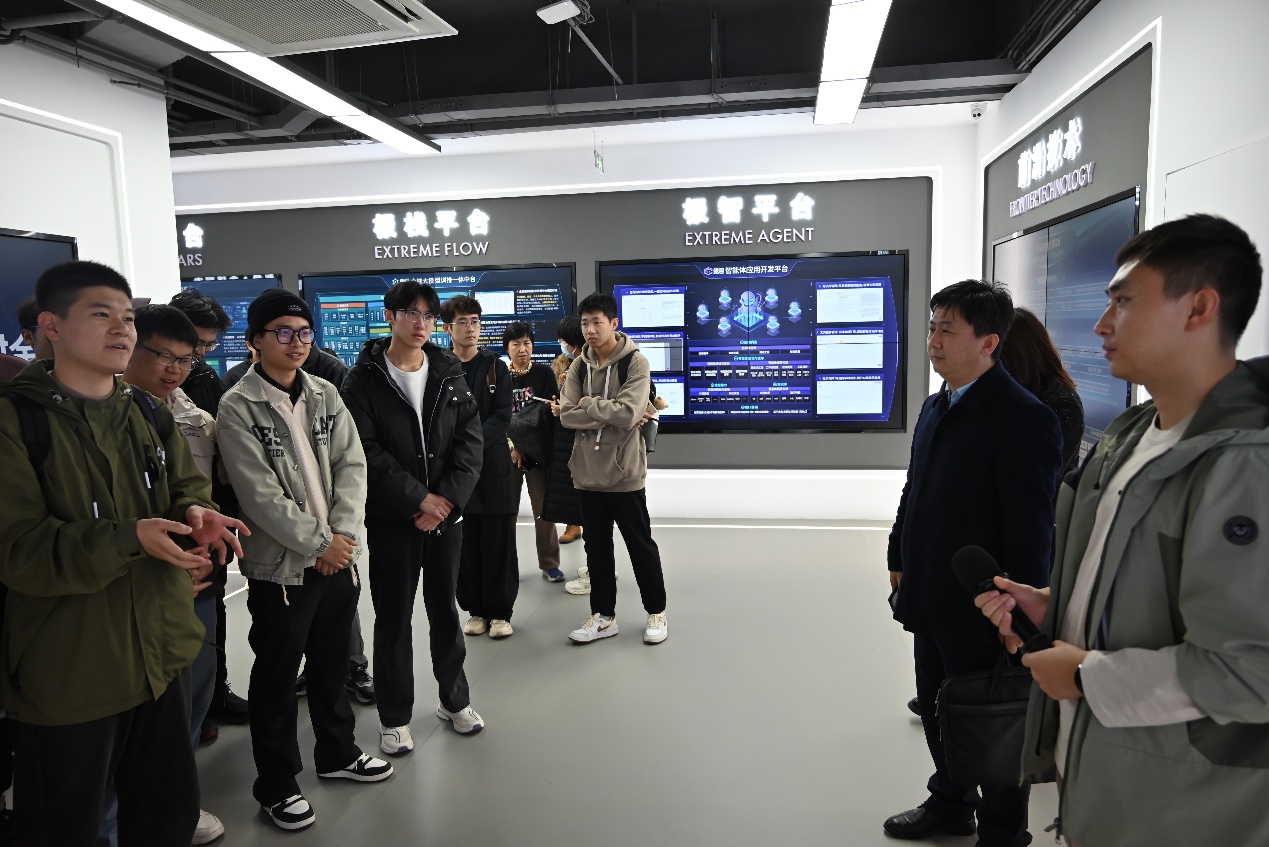 在山东极视角科技股份有限公司,企业HR负责人向大家系统呈现了人工智能视觉算法在智慧能源、智能城市、智慧医疗等多领域的创新应用与实践成效。围绕公司发展历程、核心技术优势及未来战略规划,学生代表互动交流环节中,就行业人才需求标准、技术研发难点、实习实践机会等问题积极提问。吴春雷书记鼓励同学们扎实掌握专业理论知识,要主动对标信息技术产业发展要求,珍惜实习实践等交流机会,在实战中积累经验、提升能力,努力成长为信息技术产业急需的高素质人才。