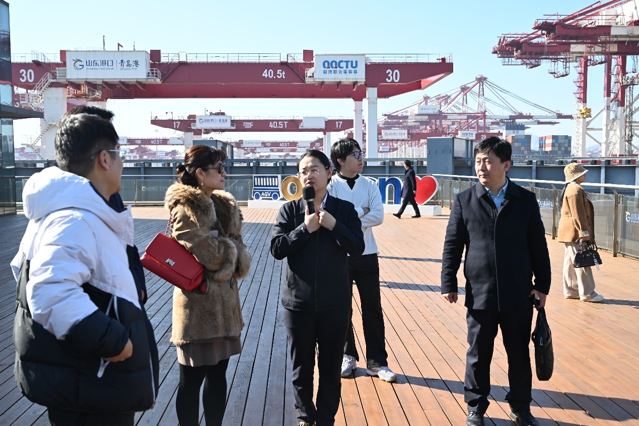 青岛港自动化码头解说人员回答教师提问