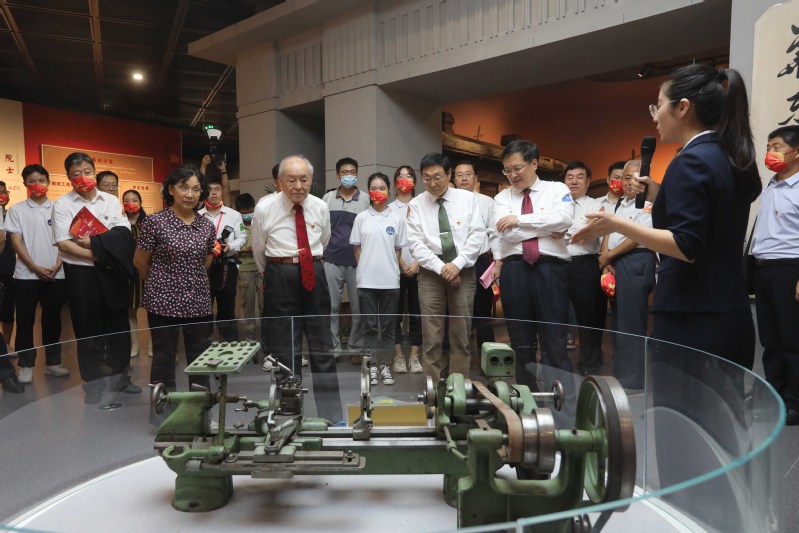 在热烈的掌声和激扬的音乐声中,王勇、郝芳、方华灿、李阳、朱光有、段晓飞、郑其绪、山红红、蒋有录,学生代表刘烨宸共同按动按钮,开启校史馆大门。与会人员在讲解员的带领下进入校史馆,参观过程中,校友们一同回忆学校建设发展历史,共叙母校情谊,其中部分展品更是引发校友们阵阵感叹。