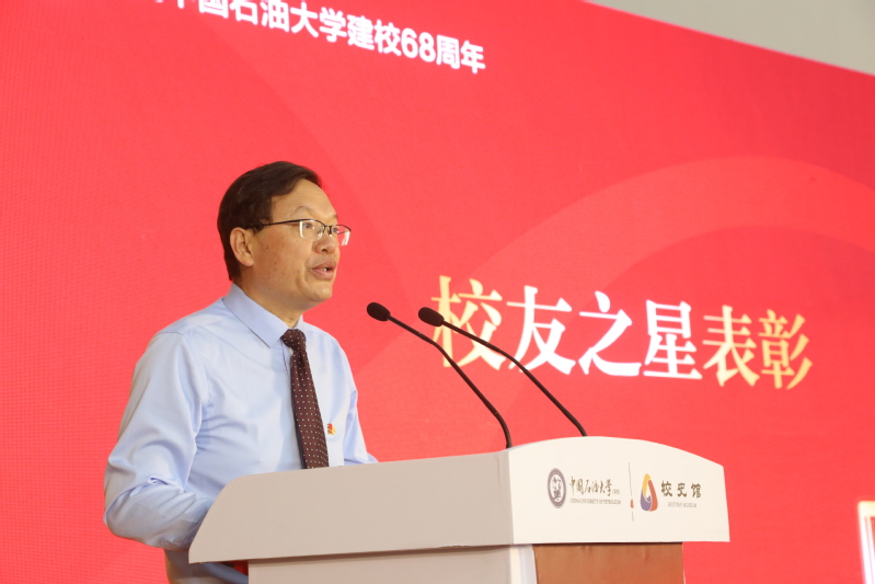 中国石油大学时期校友代表段晓飞对母校多年来辛勤培育表示感谢