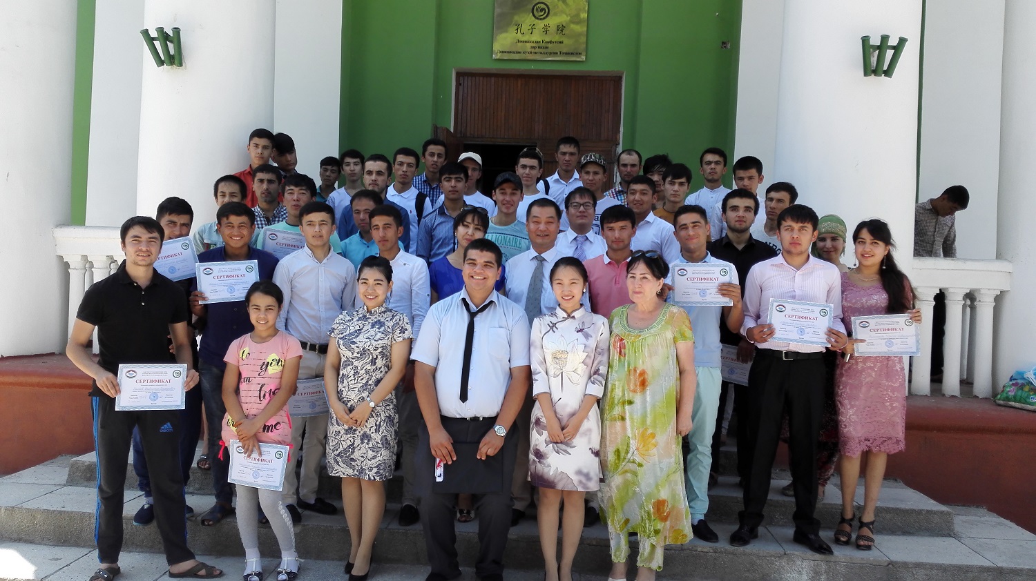 2016年7月7日上午,塔吉克斯坦冶金学院孔子学院在一楼多功能室举办了“第一期汉语和中国文化学习班结业证书颁发及教学成果展示”活动。塔吉克斯坦冶金学院校长穆赫托尔、孔子学院中方院长陈洪兵、孔子学院所有中方工作人员以及孔子学院的学员们参加了此次活动。