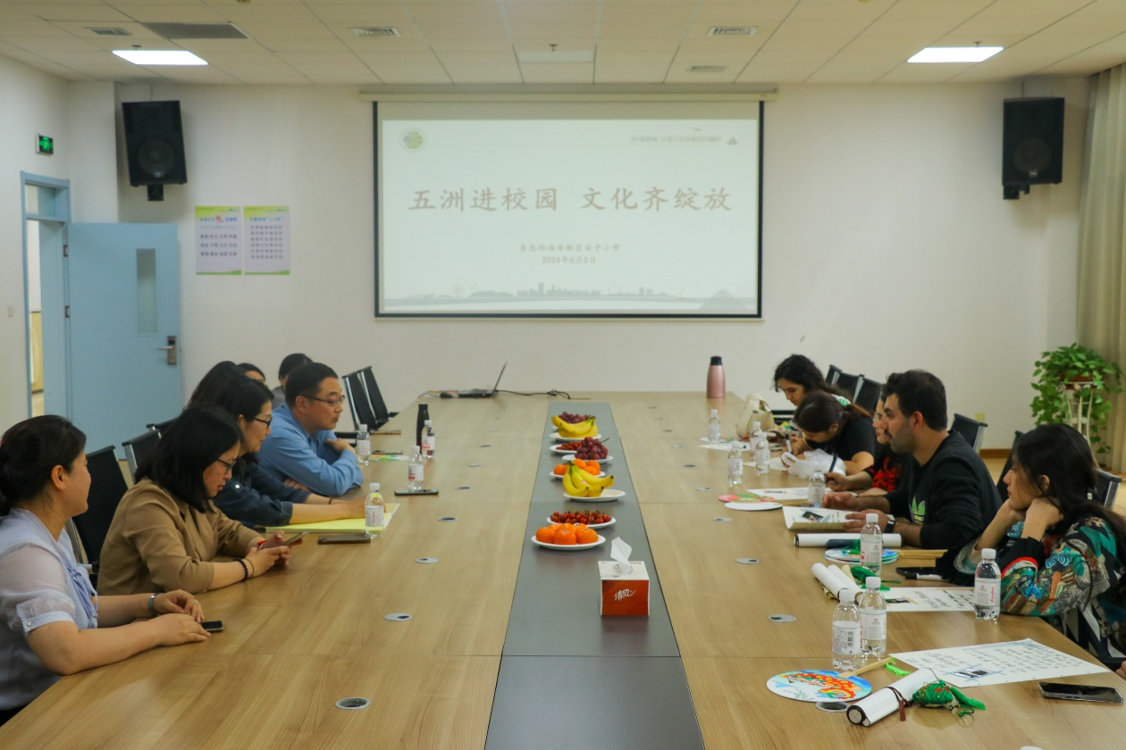 粽叶飘香,端午安康,我校国际教育学院五洲文化进校园系列活动于2024年6月6日持续开展,来自巴基斯坦、俄罗斯、塔吉克斯坦、土库曼斯坦、乌兹别克斯坦、伊朗、等国家的国际学生志愿者前往西海岸新区海王路小学进行文化交流。