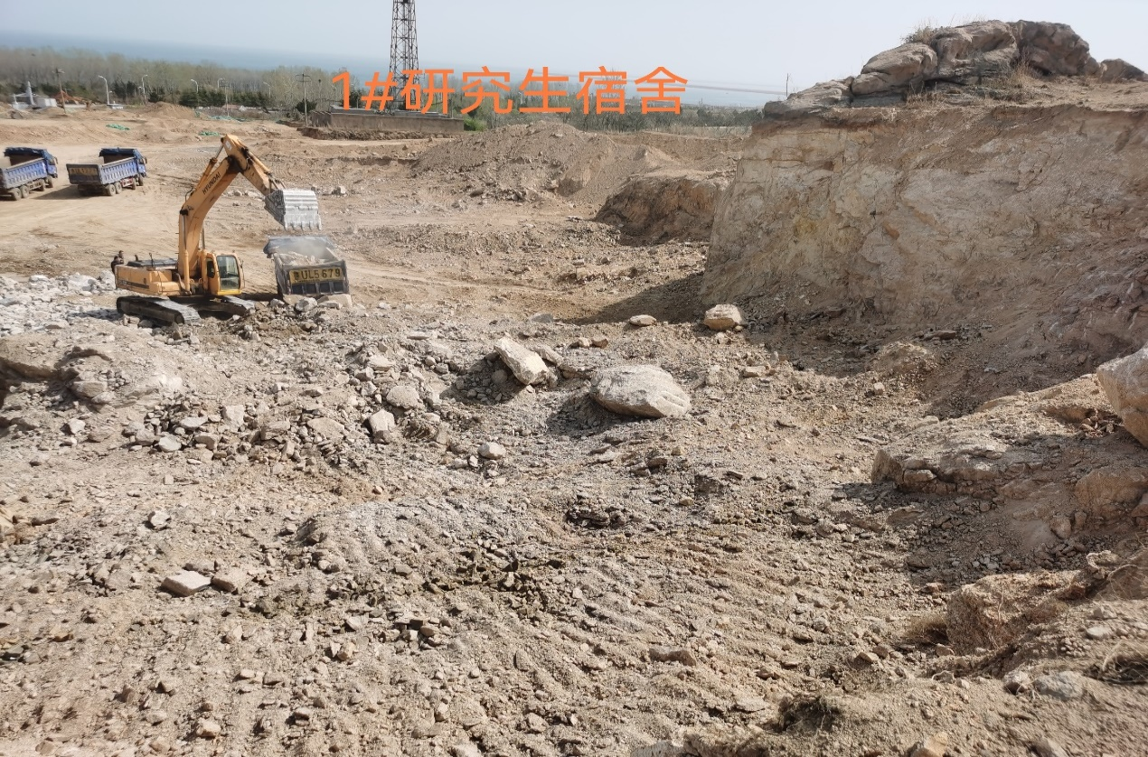 2.目前1#院系实验科研楼土石方开挖外运已完成,2#院系实验科研楼临边防护、土石方开挖外运已基本完成,1#研究生宿舍土石方开挖外运完成65%;教学楼、食堂和师生活动中心基坑石方爆破及土石方开挖外运完成90%;5#本科生宿舍土石方开挖外运完成30%,7#本科生宿舍土石方开挖外运完成70%,6#、8#本科生宿舍土石方开挖外运已完成。因林地清偿等原因,1#-4#本科生宿舍尚未清表完成,因无法进场地勘暂无基坑图纸。施工单位现场办公区搭设已完成;因清偿原因2#院系实验科研楼无法继续开挖,本科生宿舍爆破也受到影响。博士生公寓土石方尚未完成招标,现场土石方未施工。