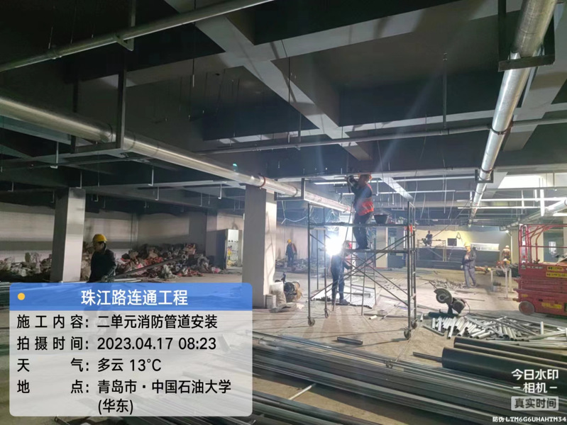正在进行电气配管施工、屋面钢结构安装和室内精装钢架焊接等工作,预计7月底施工完成8月交工。