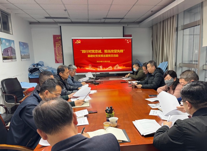 2024年12月25日,基建处党支部组织召开“践行对党忠诚 担当攻坚先锋”主题党日活动。