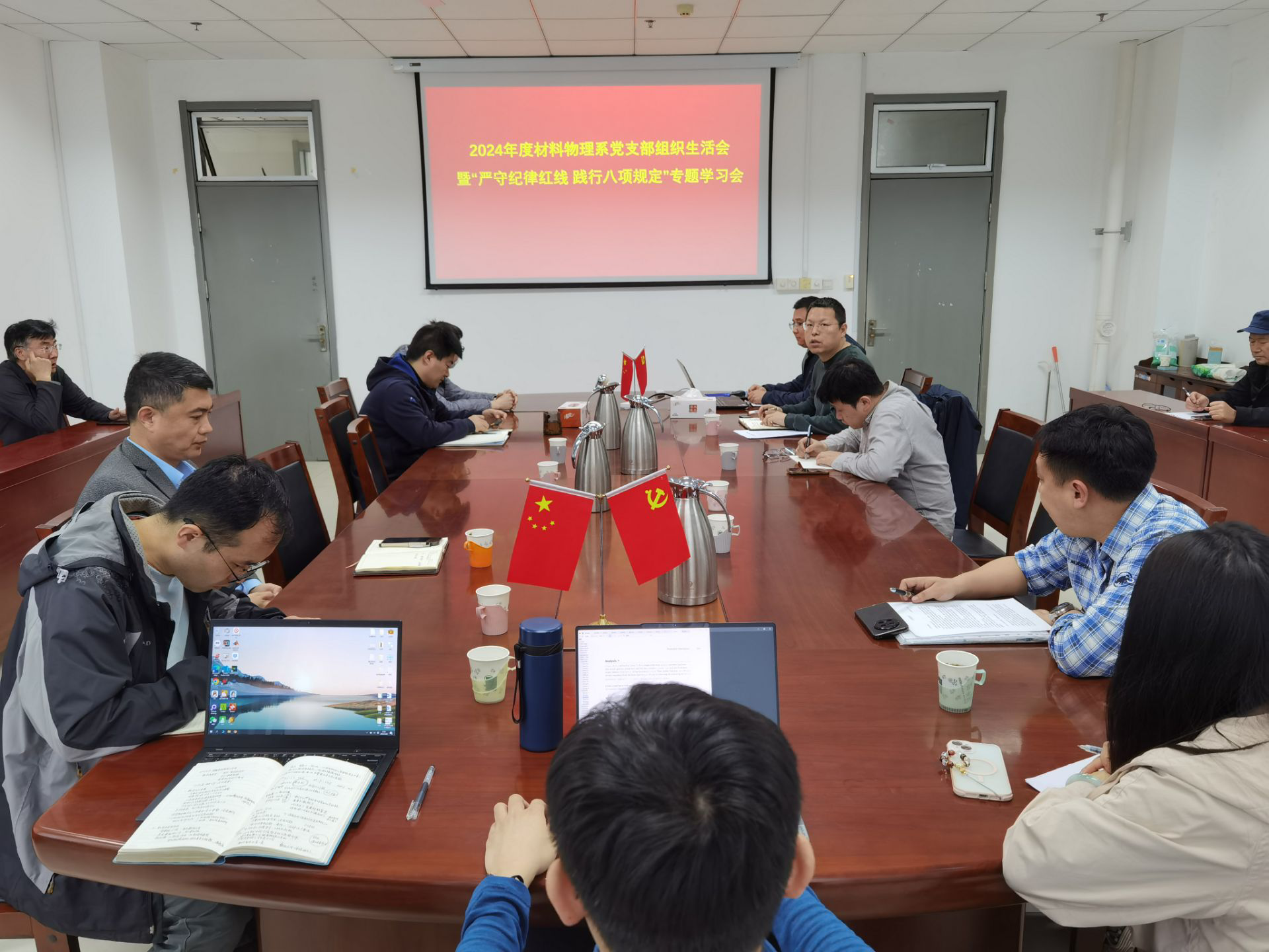 3月26日,材料物理系党支部在工科楼E510会议室召开2024年度组织生活会,同步开展“严守纪律红线 践行八项规定”专题学习。会议由党支部书记、系主任孙霜青主持,全体教师党员围绕思想淬炼、问题查改、责任担当三大主题展开深入剖析与交流。