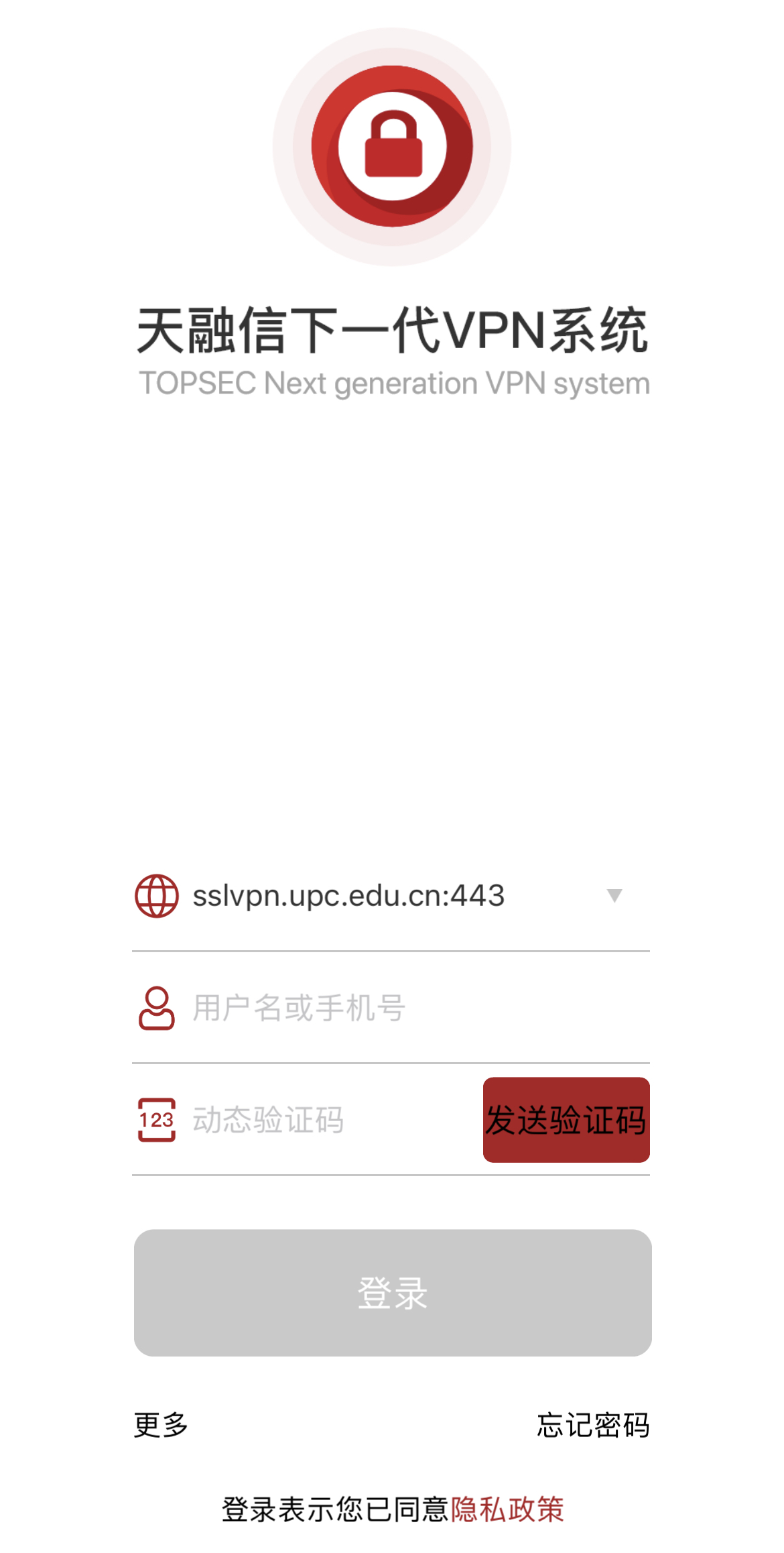 输入VPN地址:sslvpn.upc.edu.cn:443
