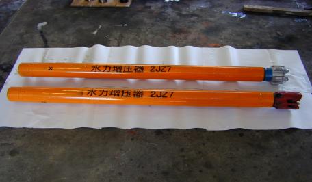 井下增压泵是在不增加地面泥浆泵的压力和功率条件下,利用部分泥浆作动力,在井下将超高压钻头的射流压力增加到100MPa以上,普通水眼的尺寸、功能和使用条件不变情况下,实现水力与机械联合破岩,以达到大幅度提高钻速、降低成本、缩短钻井周期的目的。该技术经过多次仿真性能试验、全尺寸模拟钻井试验后,于2004年11月在中原油田进行了井下推广试验,超高压钻头与“转盘加螺杆复合钻”钻井技术相比,钻井速度提高了一倍。