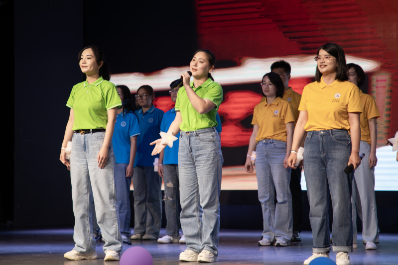 在合唱的最后,老师们为毕业生送上祝福和期待,“愿你们心怀热爱,愿你们逐梦山海,愿你们闪耀未来,愿你们初心不改。祝大家毕业快乐,向光而行!”全场齐声高喊,引得台下阵阵喝彩。