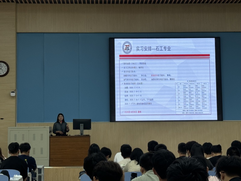 【本站讯】7月3日,学院于南教300号召开2022级本科生年级大会暨“‘职’点迷津,‘就’启新程“就业指导系列活动第三期。此次会议将生产实习校外安排事项与2026届本科毕业生就业指导相结合,为学生明确实习任务与未来规划方向。辅导员王静、就业指导中心学生6名学生助理以及石油工程专业2022级本科生全体成员参会,会议由王静主持。