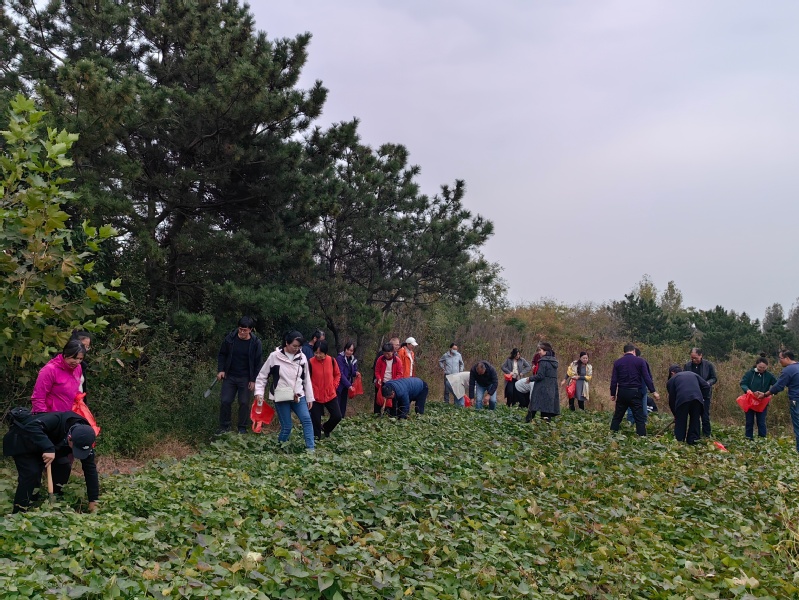 午后,活动进入秋日丰收体验环节。在采摘园内,老师们亲手摘取苹果、葡萄,刨挖地瓜,在愉快的劳动中体验农事的艰辛与收获的喜悦。这一过程让老师们更加深刻地理解了“半丝半缕,恒念物力维艰”的内涵,有助于引导大家进一步崇尚劳动、尊重劳动、珍惜物资。
