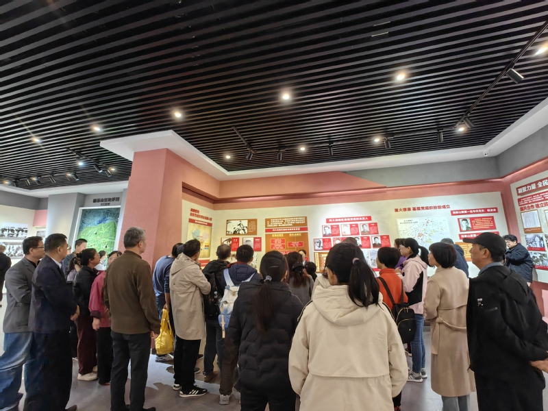 随后,队伍前往杨家山里红色教育基地。该基地位于铁山街道,是重要的综合性红色教育平台,展厅以“使命担当”为主题,通过五大板块内容,生动展现了革命战争年代杨家山里作为“红色堡垒、交通枢纽、革命摇篮”所发挥的重要历史作用。在庄严肃穆的氛围中,老师们认真观看历史展陈,聆听革命先辈的英勇事迹,深刻感悟他们坚定的理想信念、无畏的牺牲精神和忠诚的使命担当。这场精神洗礼激励着老师们要继承和发扬党的优良传统,将红色基因融入育人全过程,坚守为党育人、为国育才的初心使命。
