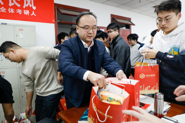【本站讯】随着2026年全国硕士研究生招生考试进入最后30天倒计时,考研自习室内备考氛围愈发浓厚。为缓解学子考前压力、提振备考士气,11月20日上午,石油工程学院党委副书记李兆爱带领辅导员王静、徐新杰及2022级党员学生干部,前往考研自习室开展慰问活动,为逐梦学子送上暖心关怀与真挚祝福,助力大家以从容姿态迎战大考、勇创佳绩。