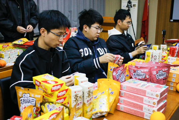 精准暖心备礼,传递石工心意。学院结合考研学子冲刺阶段的实际需求与美好期许,精心定制了专属考研大礼包:礼包中有寓意“一战橙硕”的橙子、“如你所愿”的薯愿薯片、“运气旺旺”的旺仔牛奶,也有承载“定胜”祝福的定胜糕,趣味横生的“过吧”锅巴和寓意“分数高升”的脆升升薯条,每一样礼品都凝聚着学院对考研学子“一‘研‘为定、成功上岸”的美好祝愿。更显心意的是,礼包内附有同学们提前手写的祝福卡片,字里行间满是大家的共情与鼓励,让寒冬里奋战的考研学子感受到双倍温暖与前行动力。