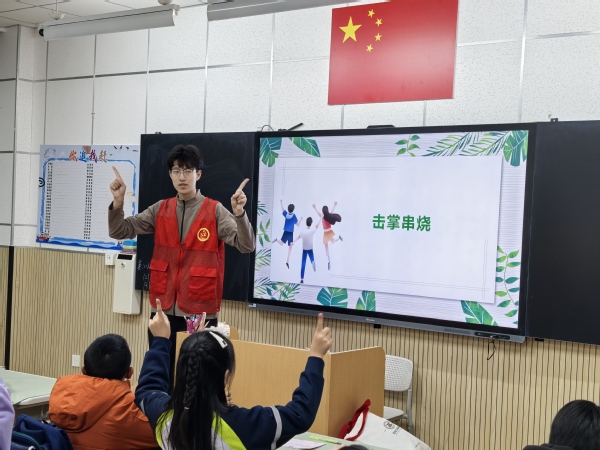 围绕“悦纳自己”的主题,刘釜源通过介绍多位为国贡献突出的先进人物,引出“成功首要在于悦纳自己”的核心观点,带领同学们齐声喊出“我能行”“太好了”等积极口号,提振精神士气。随后开展“击掌串烧”“听声识人”互动活动,既鼓励同学们认同自我、树立自信,也引导大家尊重同伴、友善相处,强化互助包容意识。