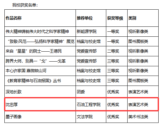【本站讯】近日,由省科协、省委宣传部、团省委、省文联、省教育厅、省科技厅、省文旅厅七部门联合举办的2025年山东省弘扬科学家精神作品征集及主题创作大赛评选结果揭晓。石油魂辅导员工作室报送作品——话剧《沈忠厚》获评优秀奖。