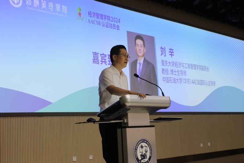 刘辛感谢学校和学院的热情欢迎,对学院领导及教职工对AACSB认证的高度关注和广泛参与表示赞赏。他以重庆大学经济管理学院AACSB认证为例进行经验分享,阐述AACSB的认证意义和核心理念,及其在学院发展、师生资源配置、国际交流、学生发展等方面的积极影响。