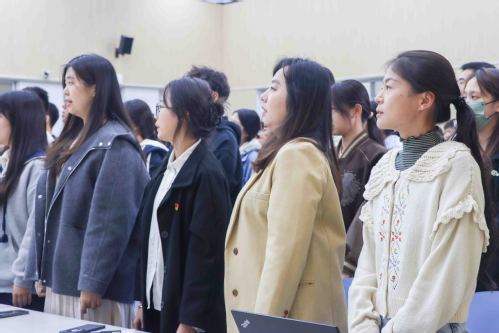 讲座在庄严的团歌声中正式开始。全体成员齐唱《光荣啊,中国共青团》,通过齐唱团歌,学生们进一步强化了团员身份认同,增强了对团组织的归属感和向心力。