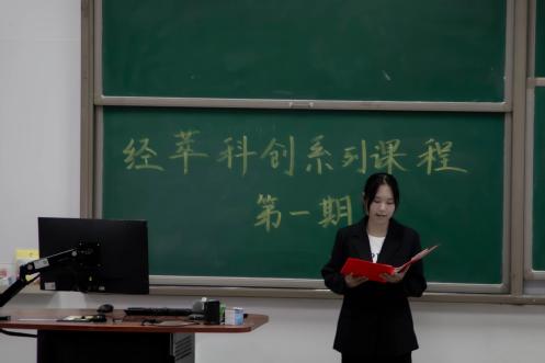 讲座伊始,主持人李超洁介绍课程定位:依托专家老师宣讲与学生经验分享搭建交流平台,本次作为系列课程的首期,设置专家宣讲与学生分享两大环节,聚焦三创赛技能与创新创业心态调整。