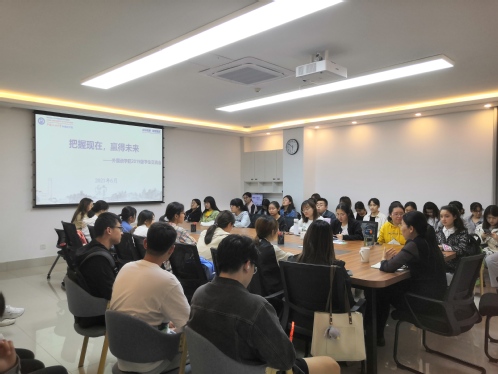辅导员杜文倩为现场学生展示了学院2017级毕业生的毕业去向,并着重分析了毕业生的考研和就业去向。她强调,当下“千军万马过独木桥”的严峻考研形势,大二学生要从现在开始认清考研形势、做好学业规划。