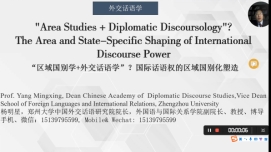 与会专家对区域国别研究的新成果、新理论进行深入研讨。外交学院副校长孙吉胜教授作题为“发挥外语学科优势,深化区域国别研究”的主旨发言;复旦大学中国外交研究中心主任任晓教授作题为“区域国别研究的要旨”的主旨发言;以色列驻加拿大东部(蒙特利尔)前总领事、以色列海法大学Chalom Schirman副教授作题为“Introduction to Area Studies of the Middle East (West Asia)”的主旨发言;华东师范大学澳大利亚研究中心主任陈弘教授作题为“外语学科下的区域国别研究:以澳大利亚研究为例”的主旨发言;中国石油大学(华东)外国语学院院长毛浩然教授作题为“‘三国’人才核心竞争力培养的器与道”的主旨发言;俄罗斯联邦外交部莫斯科国立国际关系研究所副主任、俄罗斯莫斯科国际关系学院Oxana Kharitonova副教授作题为“Methodological Challenges in Comparative Area Studies: Mission Impossible?”的主旨发言;上海对外经贸大学国别与区域语言战略研究中心主任张蔚磊教授作题为“区域国别外语人才培养,为什么,怎么做?”的主旨发言;美国弗吉尼亚大学Brantly Womack教授作题为“Area Studies is the Study of Global Social Reality”的主旨发言。