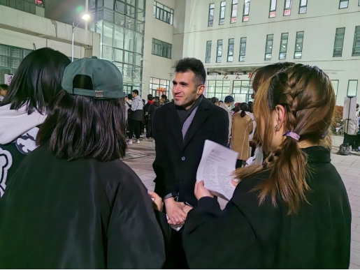 Вечером 7 апреля 2023 года на U-образной открытой площади здания Вэньли и в комнате 346 здания Вэньли была проведена третья серия мероприятий «Уголок иностранных языков КНУ» в 2022-2023-2 учебном году. Мероприятие было организовано факультетом общего английского языка, факультетом русского языка и литературы и канцелярией института, комитетом комсомола, группой 2003 по специальности английского языка и группой 2101 по специальности русского языка на темы «Почему фаббинг вреден для нас» и «Русский юмор». Ван Сюэчунь, магистр первого курса по специальности устного перевода, и Чэнь Цзыянь, бакалавр третьего курса по специальности английского языка вели английский уголок. Чэнь Цзюнь, магистр первого курса по специальности русского письменного перевода, и Чжан Шуо, бакалавр второго курса по специальности русского языка были ведущими русского уголка. Преподаватели факультета общего английского языка, русского языка и иностранные преподаватели Невилл, Стивен и Юрий общались со студентами и руководили мероприятием, в котором приняли участие преподаватели и студенты всех специальностей университета, в общей сложности более 700 человек, включая более 90 человек из Высшей средней школой № 1 нового района Западного побережья Циндао.