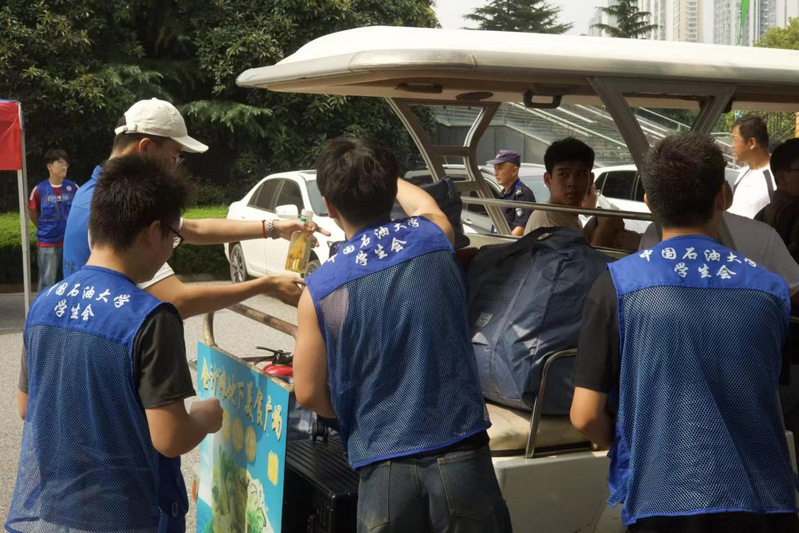 唐岛湾校区校学生会迎新志愿服务点志愿者们 郑凯升摄